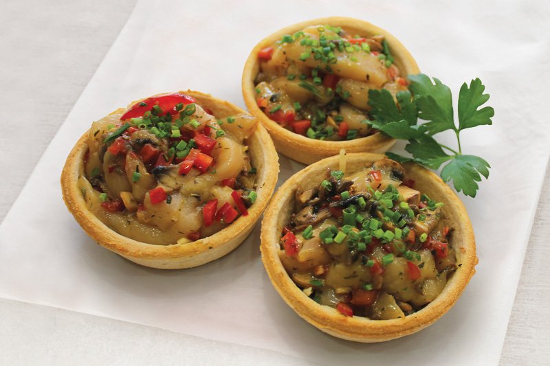 Ταρτάκια με κοτόπουλο μανιτάρια και γραβιέρα Κρήτης
