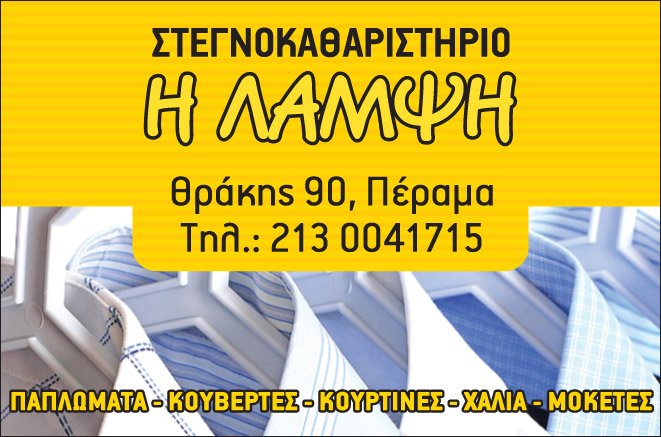 Back to ΣΤΕΓΝΟΚΑΘΑΡΙΣΤΗΡΙΟ “Η ΛΑΜΨΗ”